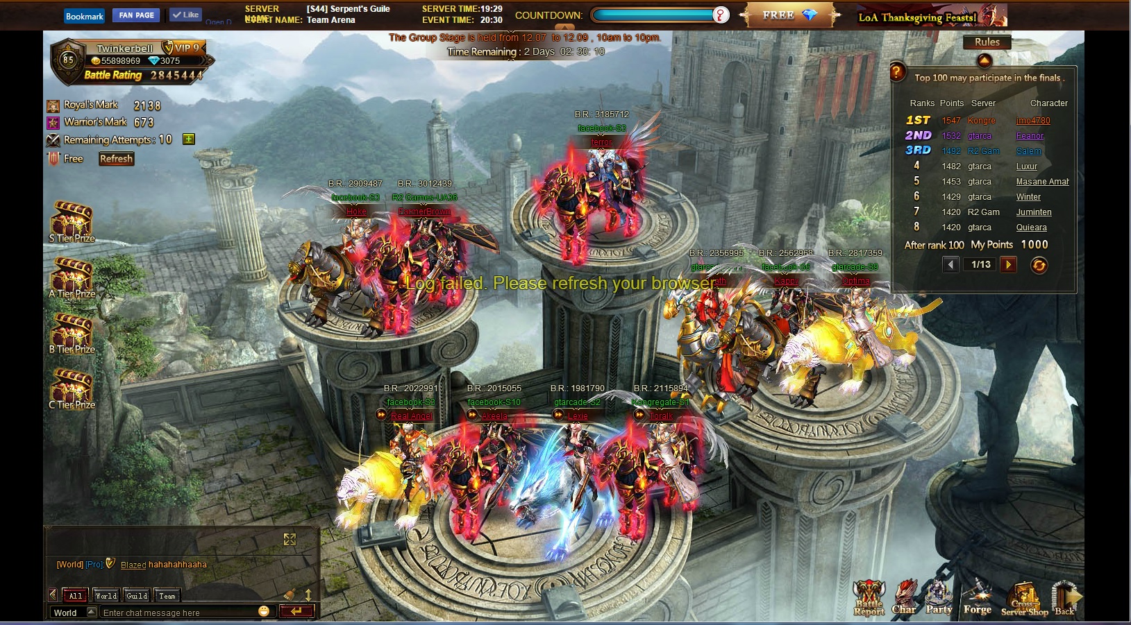 i wonder how R2games will compensate for this error. it seems that we already lost this tournament which i was waiting to collect royal marks to upgrade my weapons.
