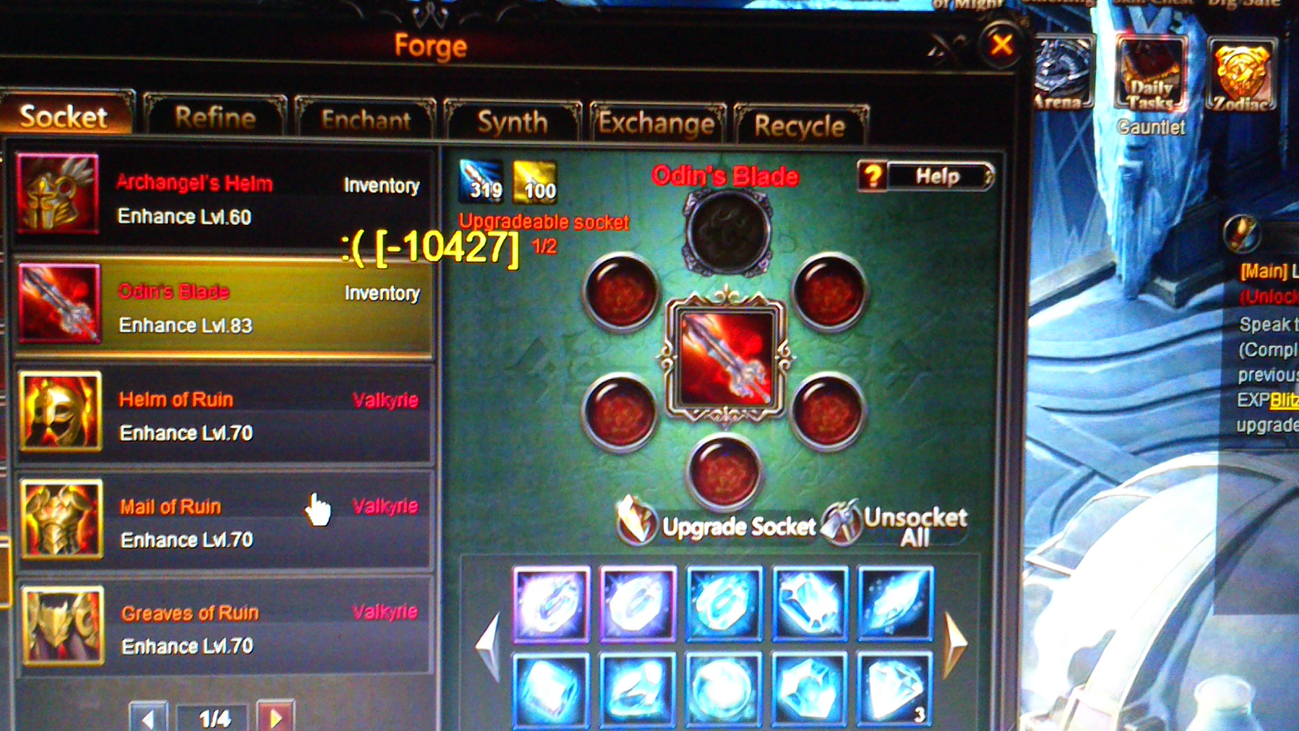 the odin blade i acquired in last tycoon cant upgrade second socket.