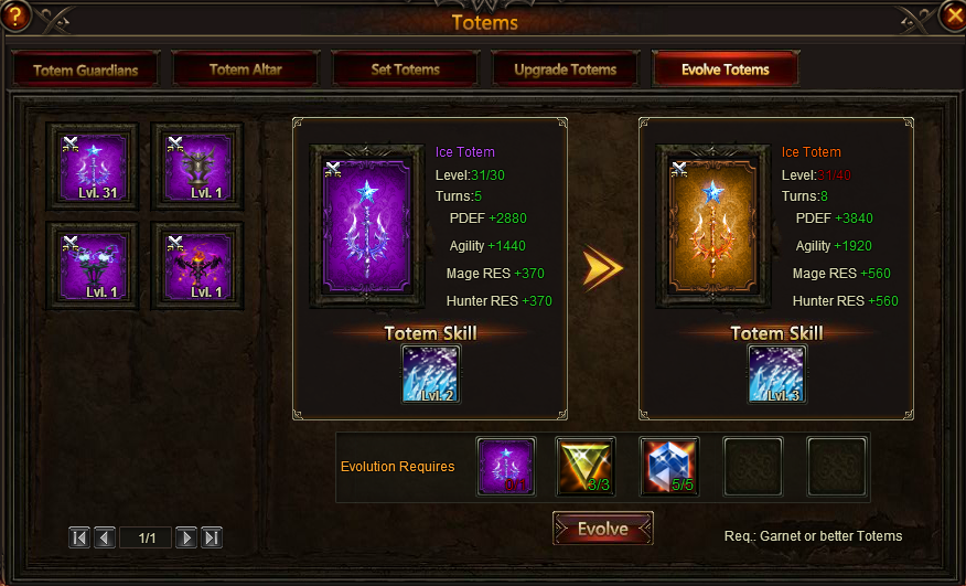 You need 1 more ice totem level 30 ( garnet ) to sacrifice it in order for your order totem to evolve.