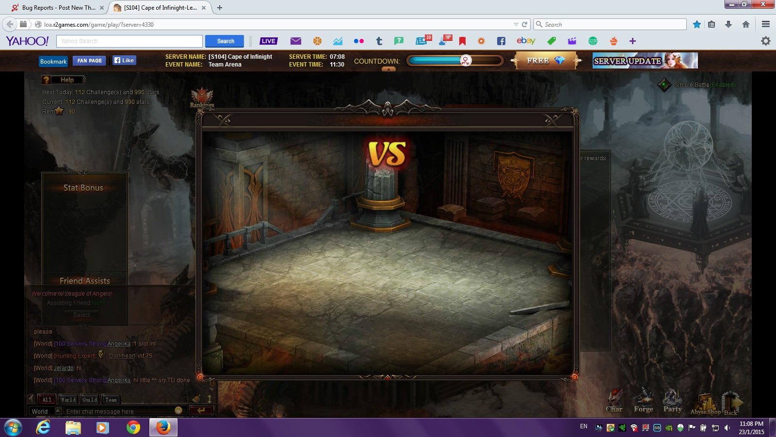 Ever since the New Lucky Tree Event started, i have been experiencing system hang whenever i enter into battle. My screen will hang when i start to go into battle both in simple battle mode or not. All events like gauntlet, compare with other players, TD, Dark Abyss and Totems. I have to reload the page to proceed and then when i go into battle, it hang again. Please look into it.