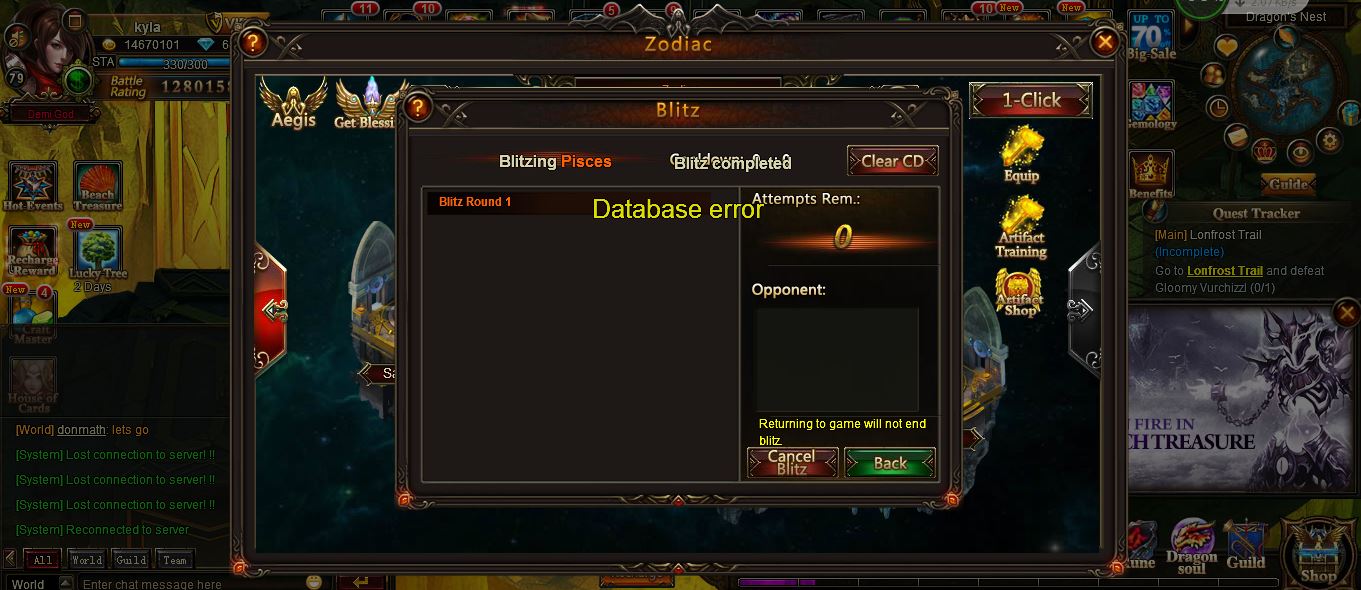 data base errorin zodiac blitz