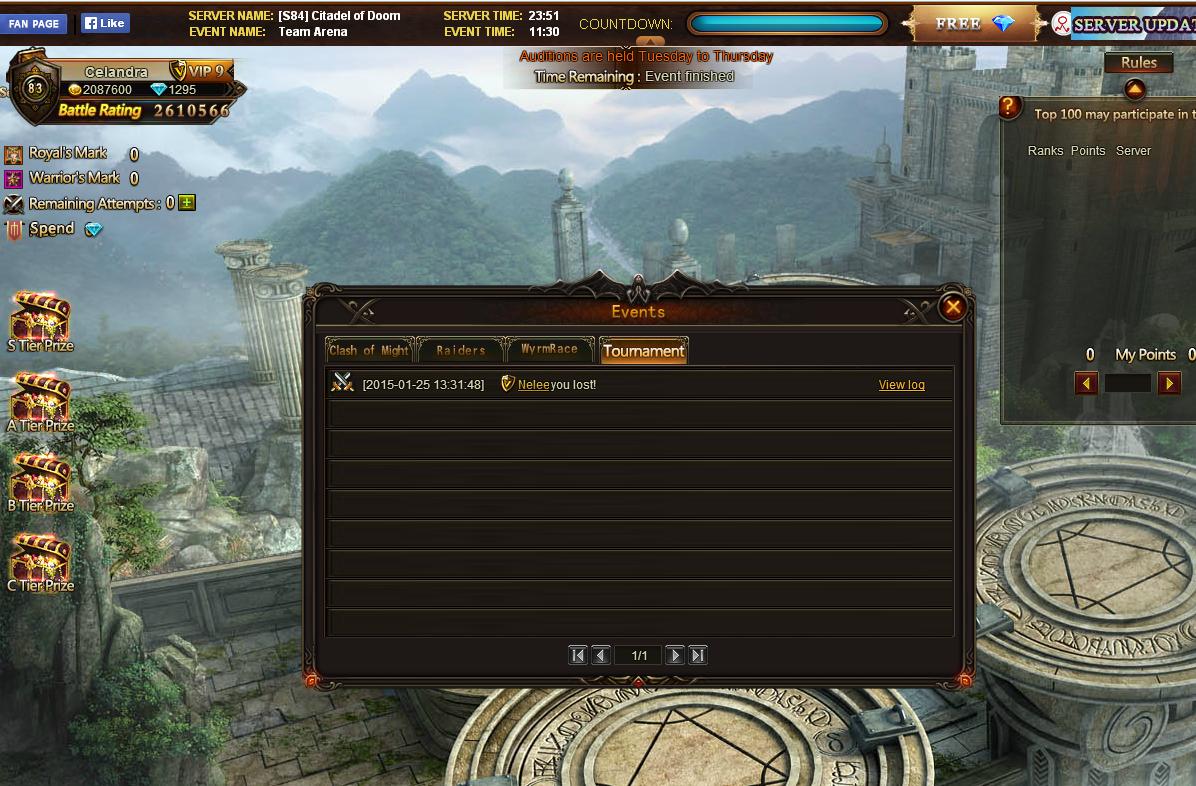 Ah never thought like that .. maybe really it is there strategy to make people spend more ..Originally posted by Miz18 View PostI won't be spending diamonds to catch up....beginning to wonder if this "glitch" is not so random and is meant to cause people who actually should be ranked to spend dias in order to make up for their first day of competition being missed.
