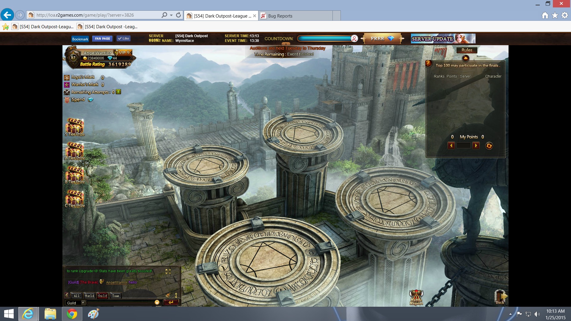 Cross server tournament bug today 1-25 ( server S54)