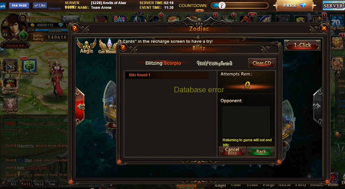 blitz error/database error