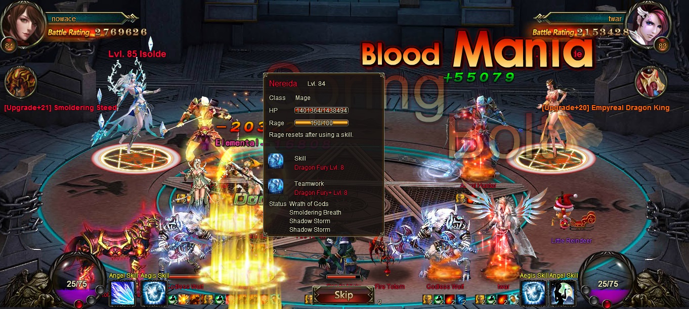 Firs we enter battle and we see Nereida rage is 75 as it HAS to be...