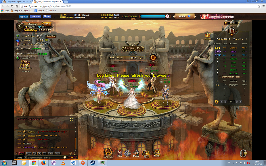 The battle is not visible, the info says 'Log failed. Please refresh your browser.'