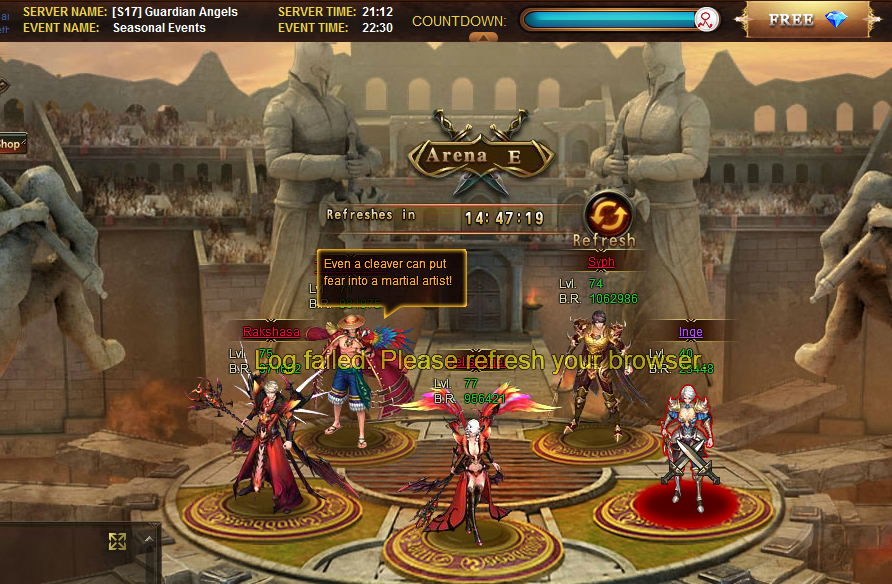 7. log failed team arena ( Can't enter because of no more teams due to bug )