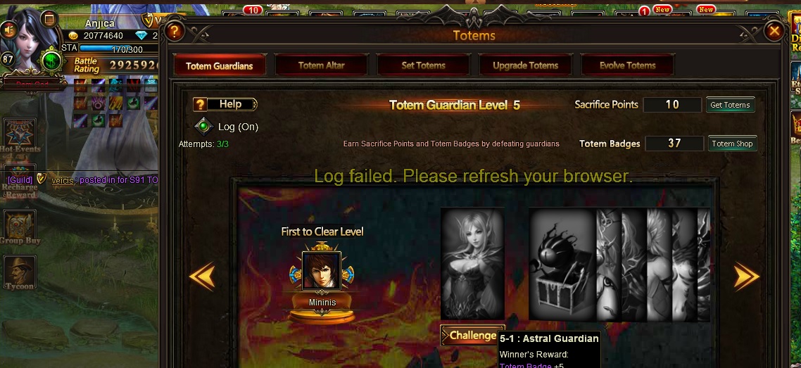 solo arena, abyss and totem are working fine fer me. CoM and raiders are bugged.League of Angels