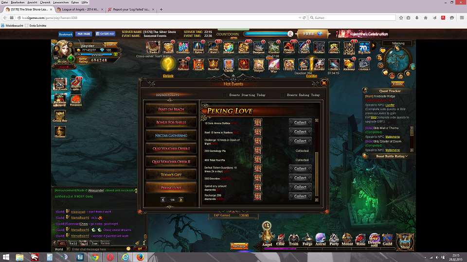 Issues : (TA Log Failed, CS still an issue for 35 days.) Arena attempts not counting towards because of this either. We can't claim peking shards.