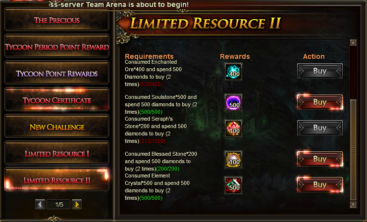 I wanted to post this issue about tycoon. The limited resource 2 claim says you can buy seraph stones after using 200 but yet the number showing is 1000 and i cannot buy.