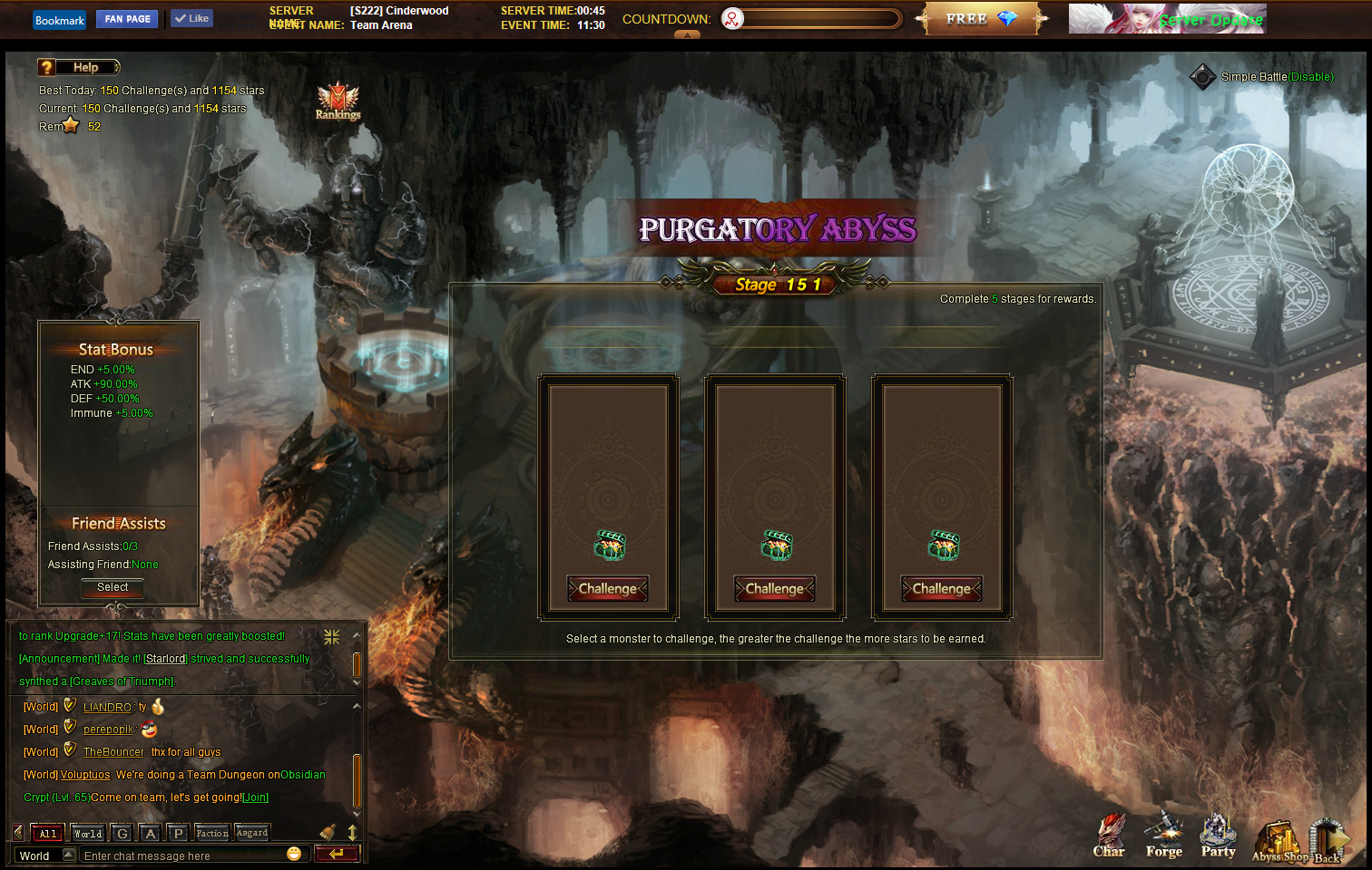 Once a player finishes 150 stages in Purgatory Abyss, he/she cannot do anything else then just leave DA.