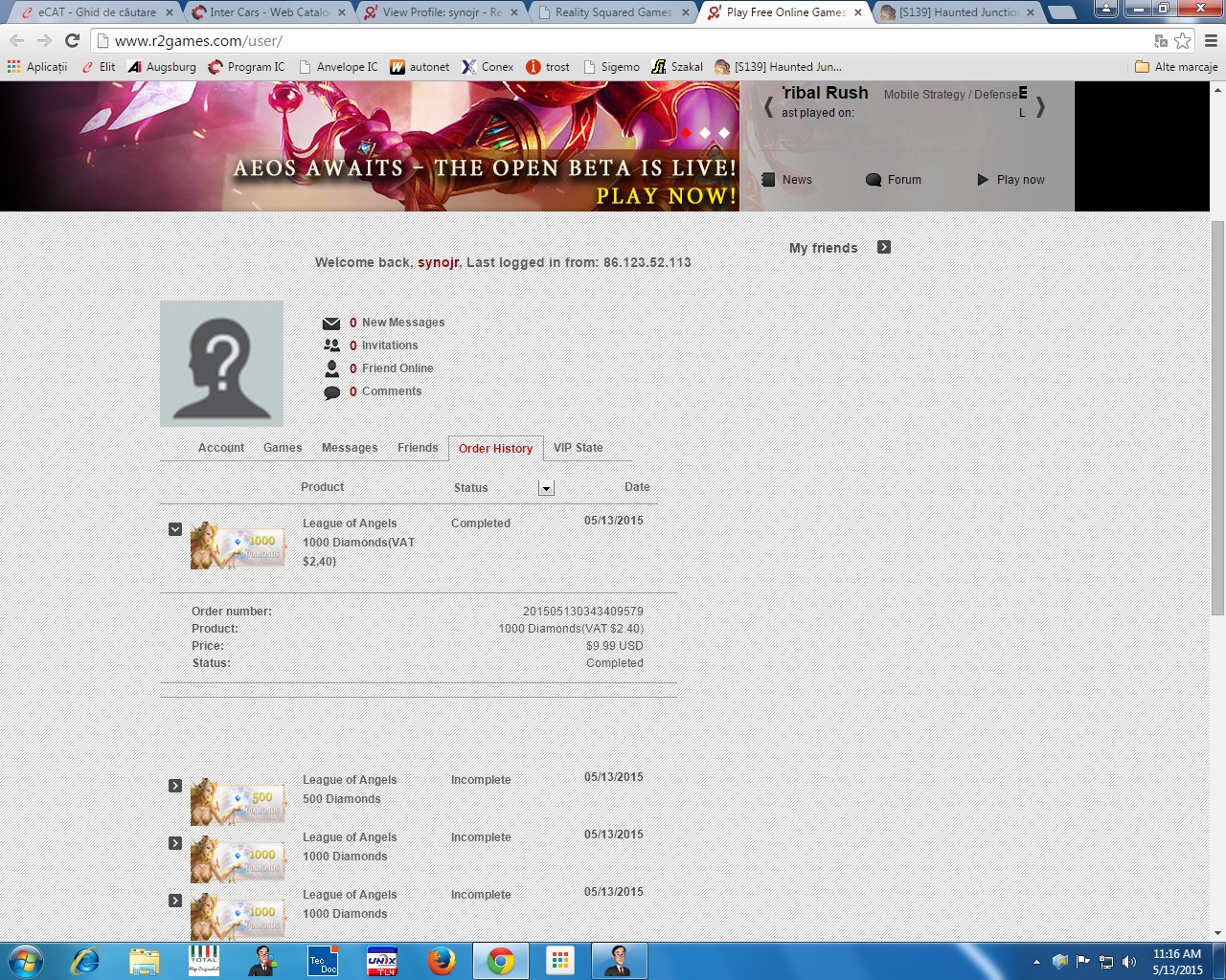 i did a recharge of 1k diamonds with paypal.i did get the receipt,on myr2 page say transaction its complete,but i didnt get the diamonds.what i need to do?i did mail to payment@r2games.com,wrote down transaction id.but i didnt get any answear or diamonds.