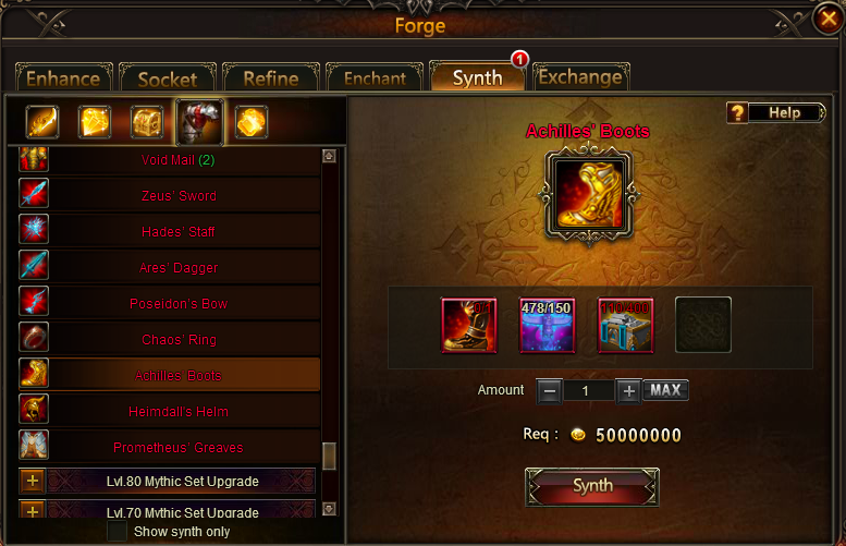 Achilles boots are missing from Imperial upgrade list.