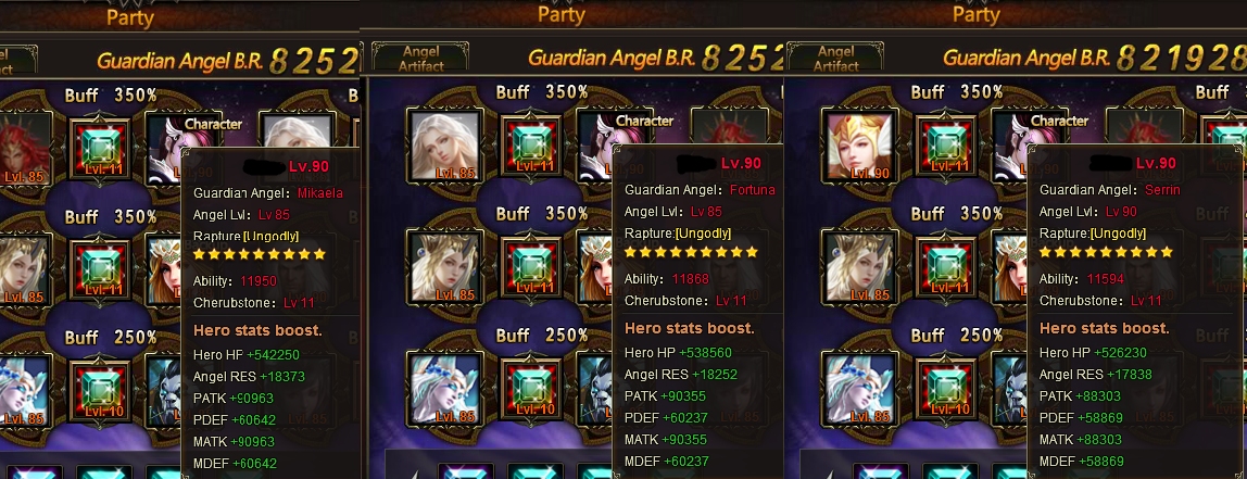 Hold on to your pants, And dont compare stats they give, but see that Mikaela and Fortuna give more elemental dmg than Serrin So yea, those 2 angels will give better stats.Originally posted by R246929129 View Posthere is a screen shot of stats buffs given by Ungodly angels Mikaela, Fortuna and Serrin on a lvl11 cherub. You can see clearly the stats buffs given by serrin is much lower than the other 2 lvl85 angels. So is this a bug or that angel serrin was build to be weaker than lvl85 angels?