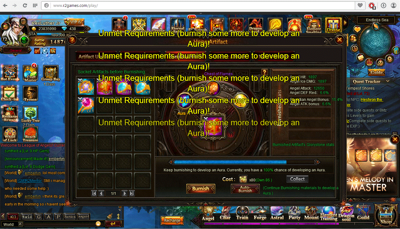 • cant upgrade to lv 1 aura in angel artifact