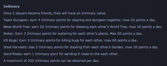 Covenent and i sent each other roses and did not get any intamacy i can't even get any killing his bugs in garden there is something wrong and we wanna be married can u fix this issue fast plz?Server 270Tags: None