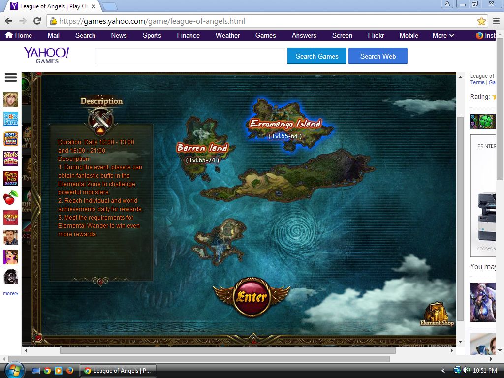 Went 8 days unable to enter Elemental Zone then 2 days was ok then 2 days cant enter. Then this morning was fine then this evening cant get in again. Have included 3 pictures. 1 is main screen when opened the other two is when I selected each island separately. When selecting an island and click enter screen just closes. Don't know how to bypass warning that shows up with Firefox browser to see if I can access Elemental Zone that way. I am currently using Chrome as my internet browser.