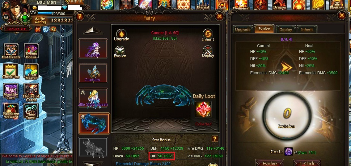 Its not a bug same goes for tauruses crit, Its how fairies are made. Use the fairies which best fit your gaming style. And not to mention cancer can get high lvl, but no atk or agy boost