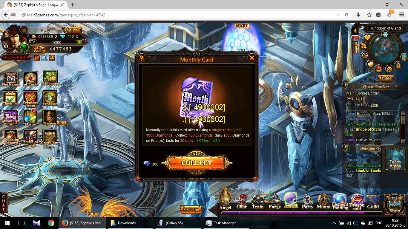 Monthly card not working on S267, worked last month but not this month. A guildie is having the same problem so can this please be addressed.