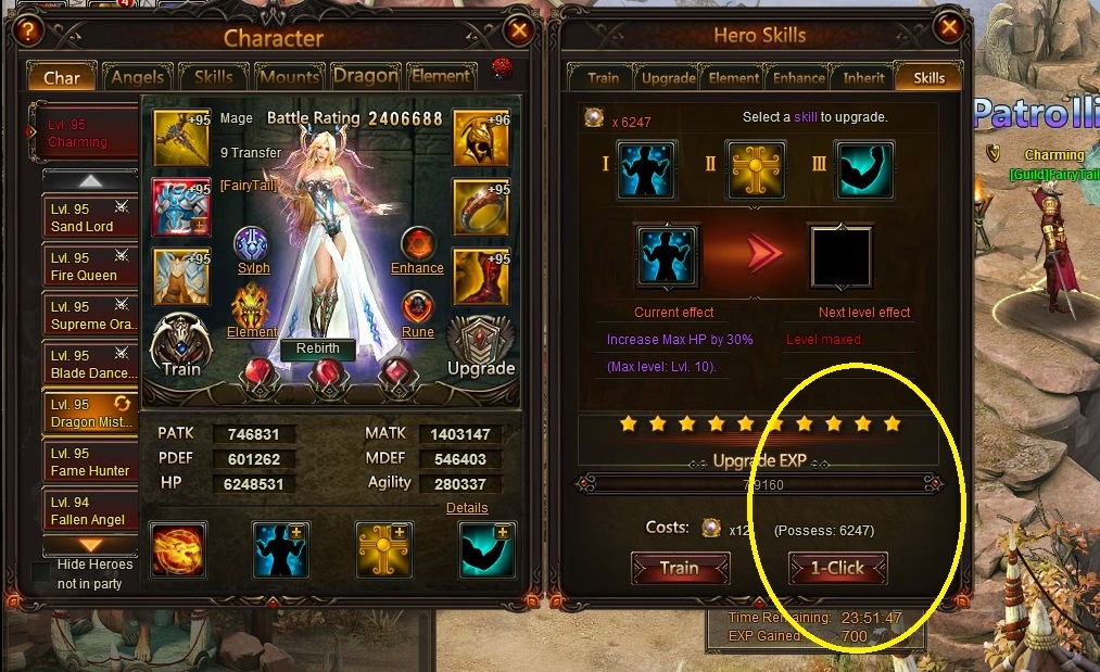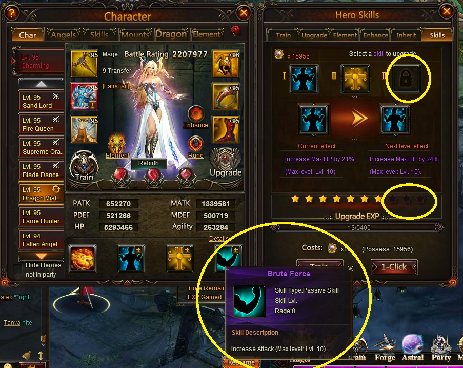 I just bought Dragon Mistress from HoC and inheritted my fully leveled Fame Hunter into her. I lost 3 stars from both Hero Skill I and Hero Skill II category I was 10 star on all 3 Hero skills before inherit now I'm 7 and 7 and the Hero Skill III spot is broken on Dragon Mistress. Please fix and send me the required Blessed stones to fill all stars to 10 again. After inherit all Training +60 and Upgrading +33 all inheritted no issues, just the Hero Skills are all messed up.