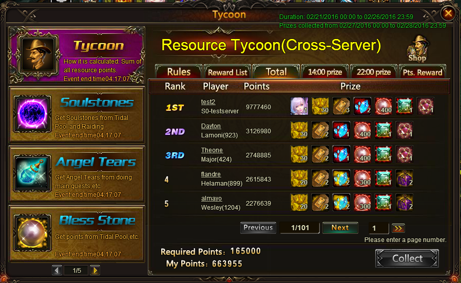 Cross server Tycoon, a TEST SERVER SHOULD NEVER be allowed to compete or mess with the event!!!!!!!!!