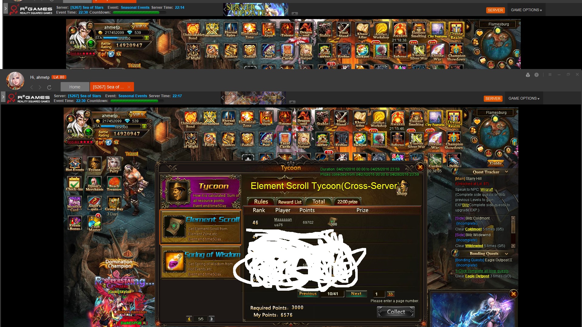 wanderer bonuses again wich people naturally did. And the elemental scrolls got counted towards tycoon.