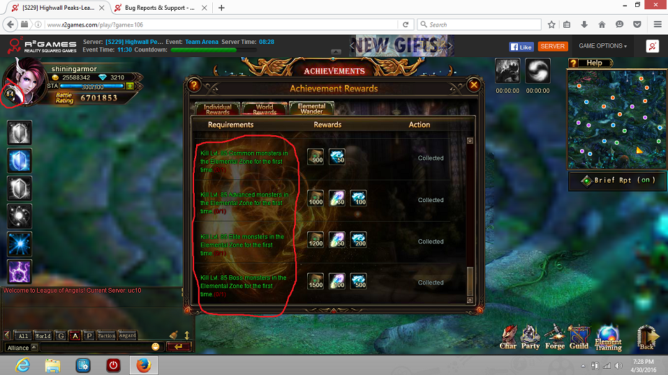 iam only lvl 84 but it says ive collected all the lvl 85 in elemental wander iam about to level up thats why i posted this