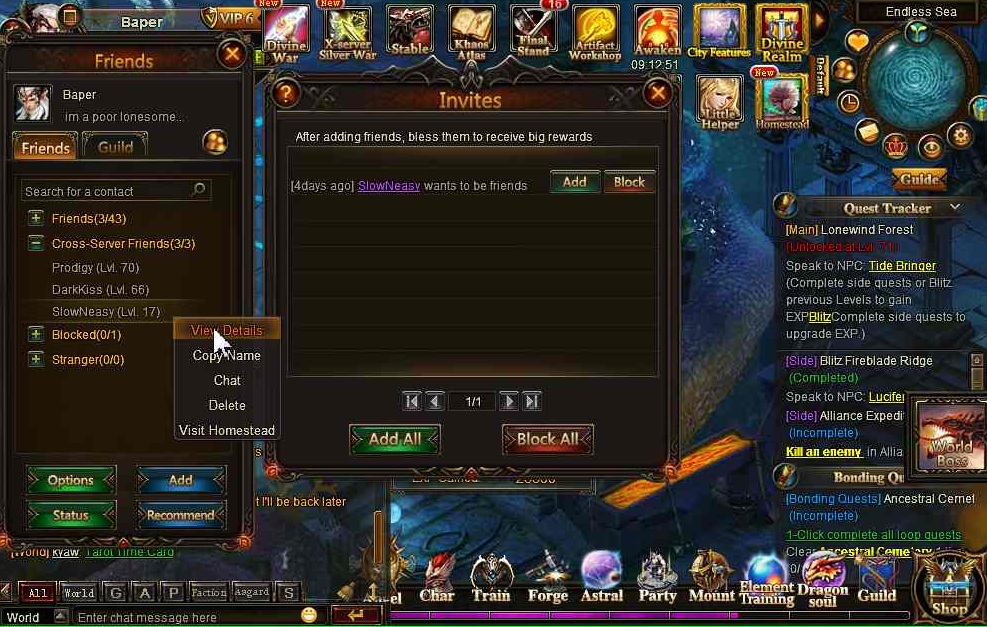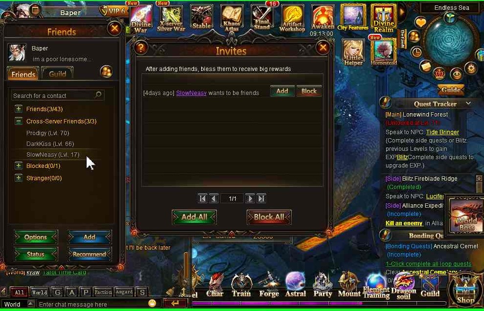 When i try to add friend i see a list of someone then he still lvl.17 but in other server when i see after add him, before i was think is new player in my server.