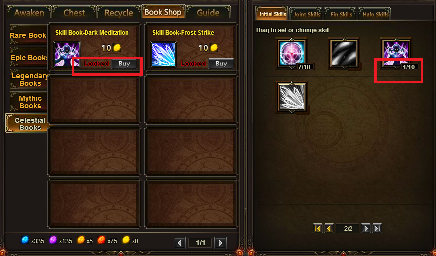 Yea but he in screen got skill alreay lvl 1, and still locked in shop.Originally posted by Vampy-chan View PostWhen you own 50 of the spell books. You have to get them from events before you can unlock. Then, and only then can you buy them with Celestial Divine stone (which is hard to get, like, very...).Antifreeze