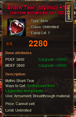shark tear(mythic) attribute is PDEF 3800, MDEF3800