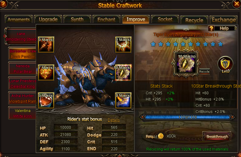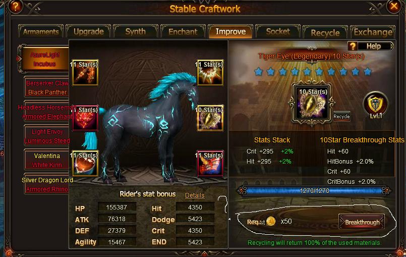 i cant breaktrough on any "tiger eye" armament. please fix that!!!