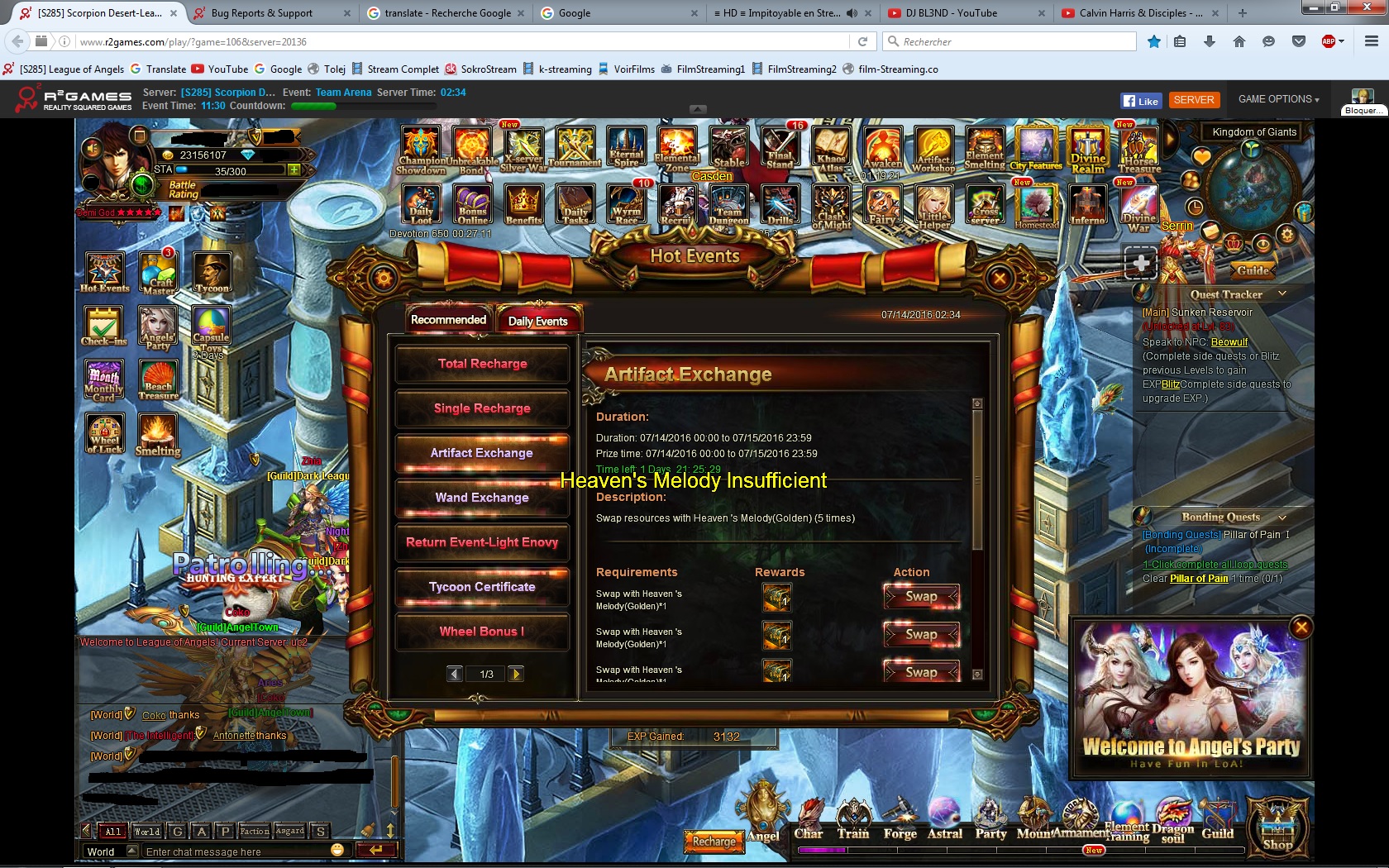 Character name and server info?hi , i cant exchange my golden heaven melody vs other item , i have 2 golden melody , 1 i use , 1 i dont use , i go in hot event and exchange dont works...Last edited by Alkaris; 07-14-2016, 02:13 AM.