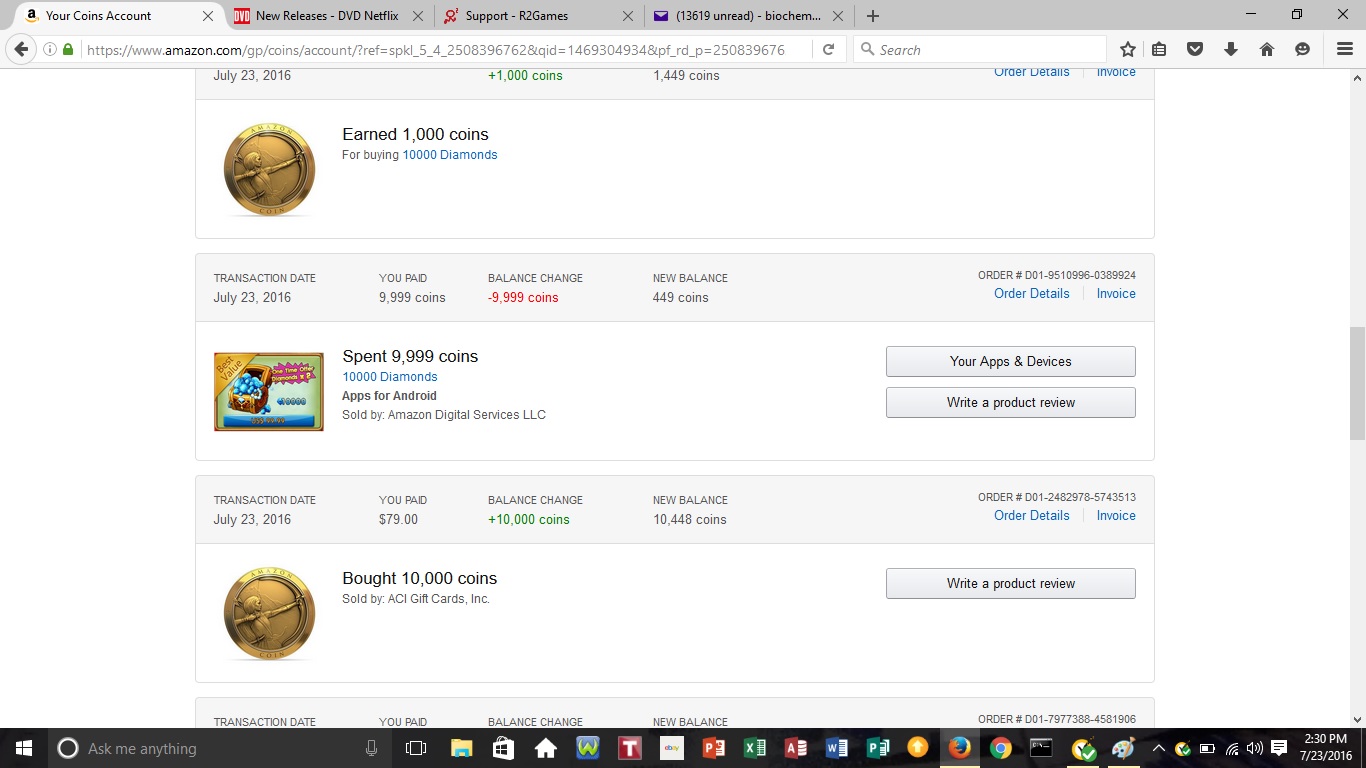 I purchased 10,000 Diamonds on July 23, 2016