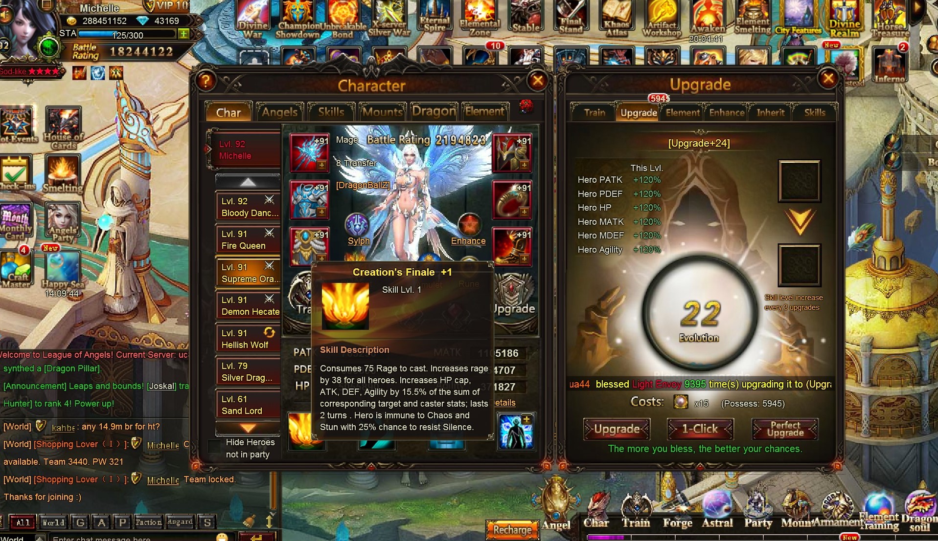 I just noticed my Supreme Oracle, though upgraded to level 24, is stuck at Creation's Finale +1. This should be +9. I am on server 219, Island of Desolation. My character name is "Michelle." Thanks.