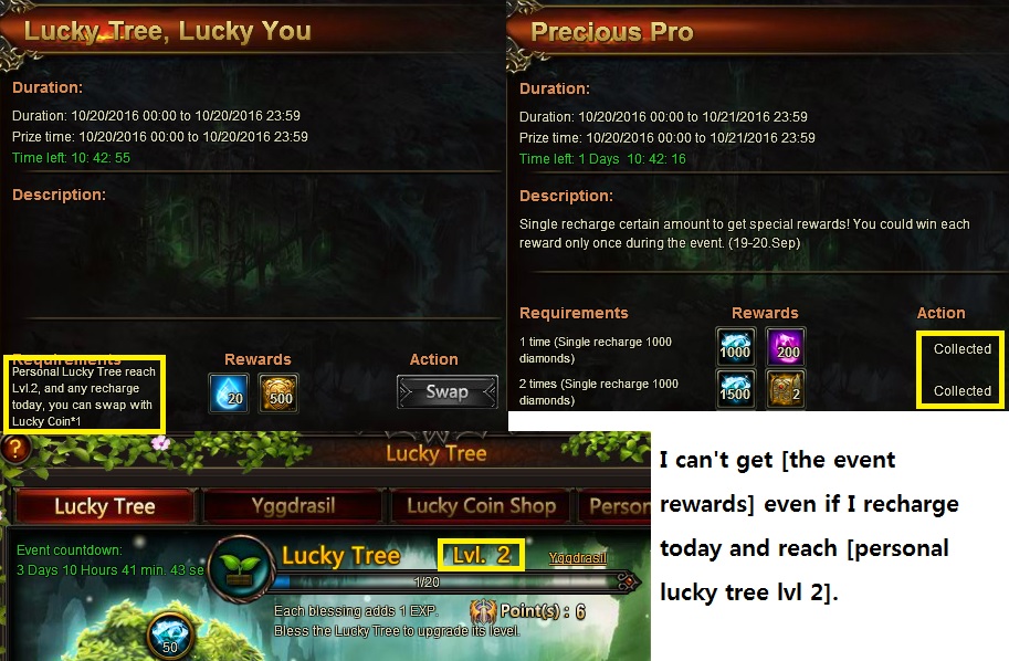::: I can't get [the event rewards] even if I recharge today and reach [personal lucky tree lvl 2]. :::