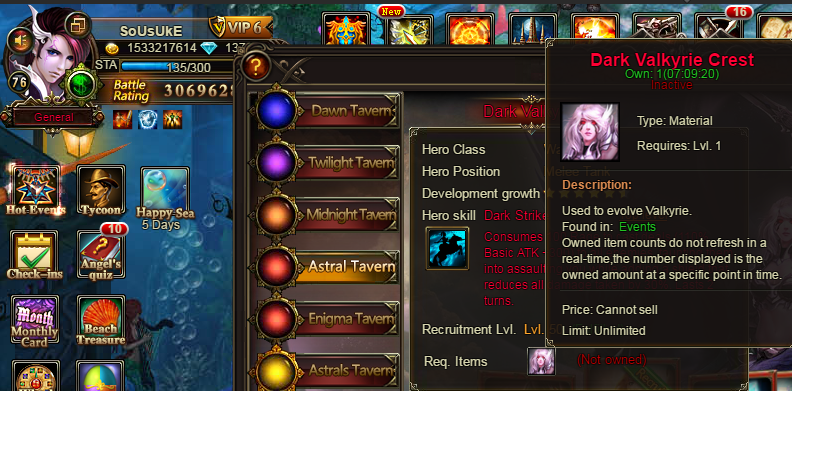 no i own a Dark Valkyrie Crest. Look again below the words "Dark Valkyrie Crest" in the 1st screenshot. It says "Own: 1 (07:09:20)"