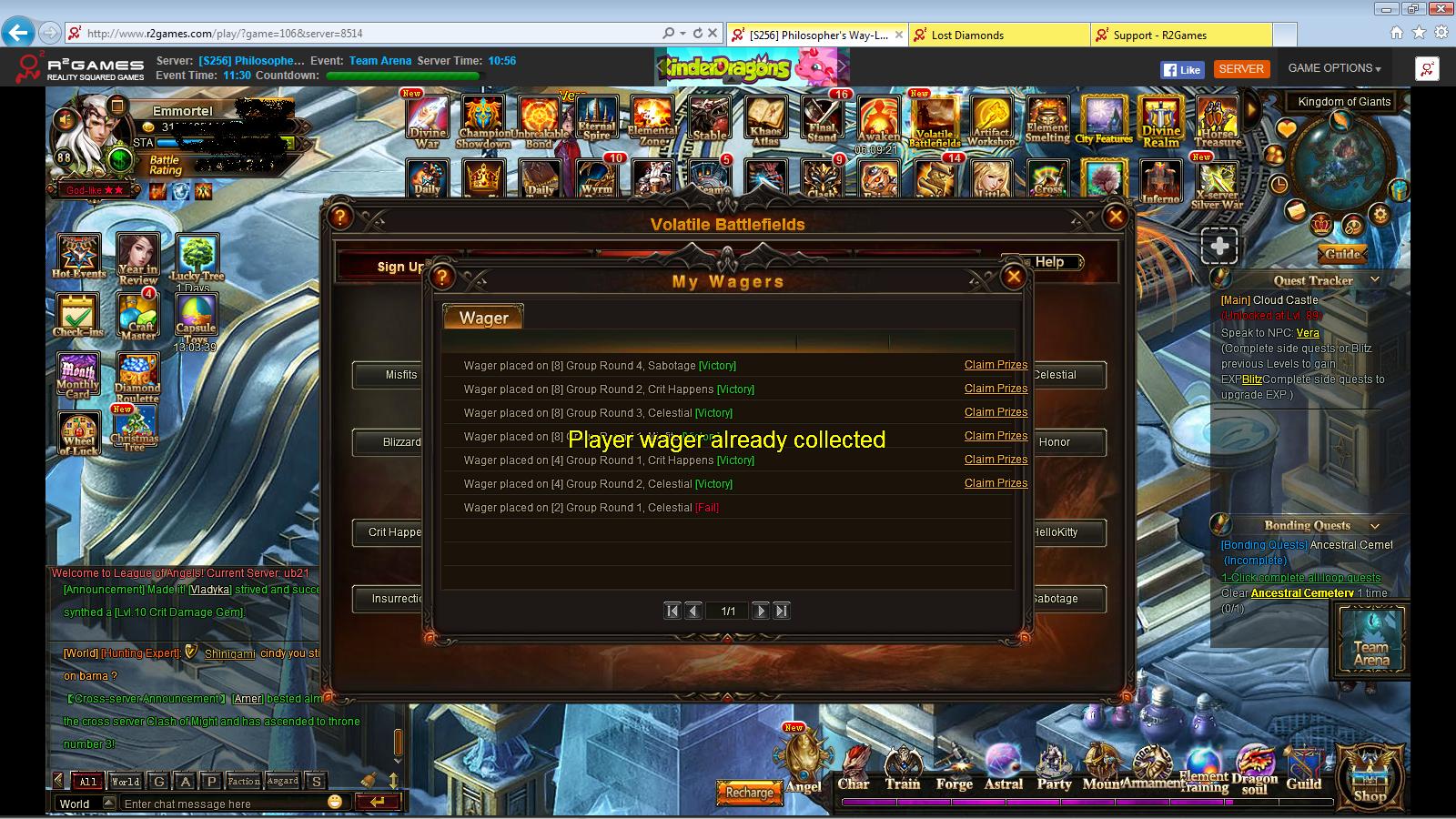 Hello, I did not receive my diamonds in the bets. However it is registered that I collected them.