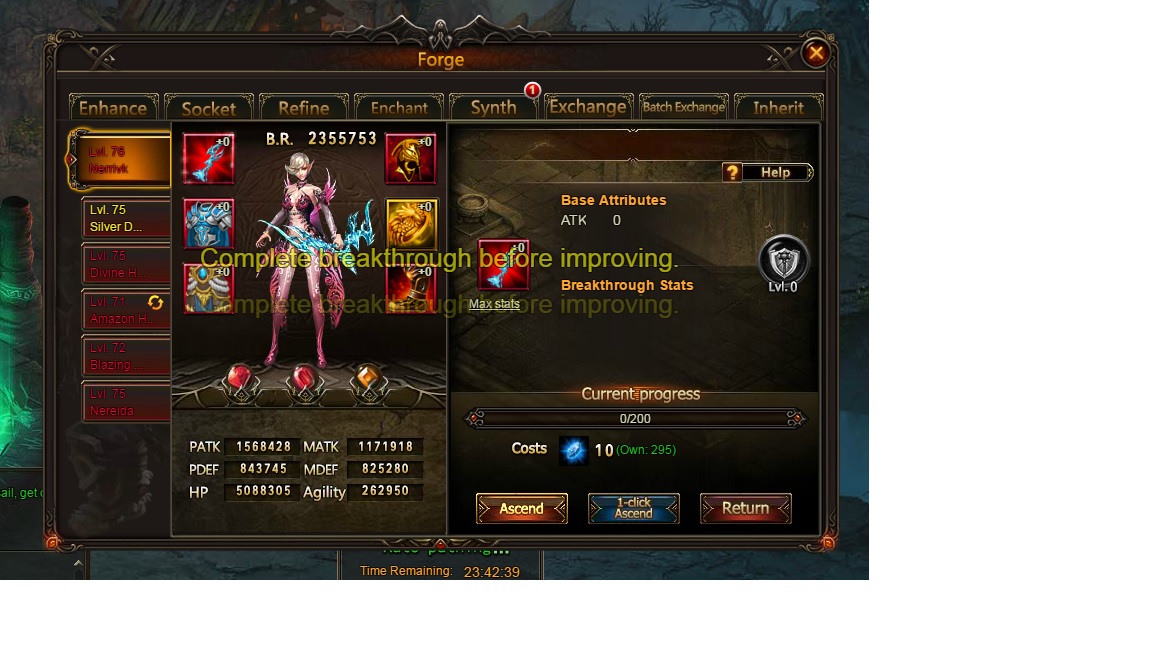 When you press the "Ascend" button displays the inscription "complete breakthrough before improving".