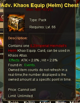 Attached please find a screenshot of incorrectly described khaos chest screen + a screen of khaos card itself that has different attributes than promised on its chest description