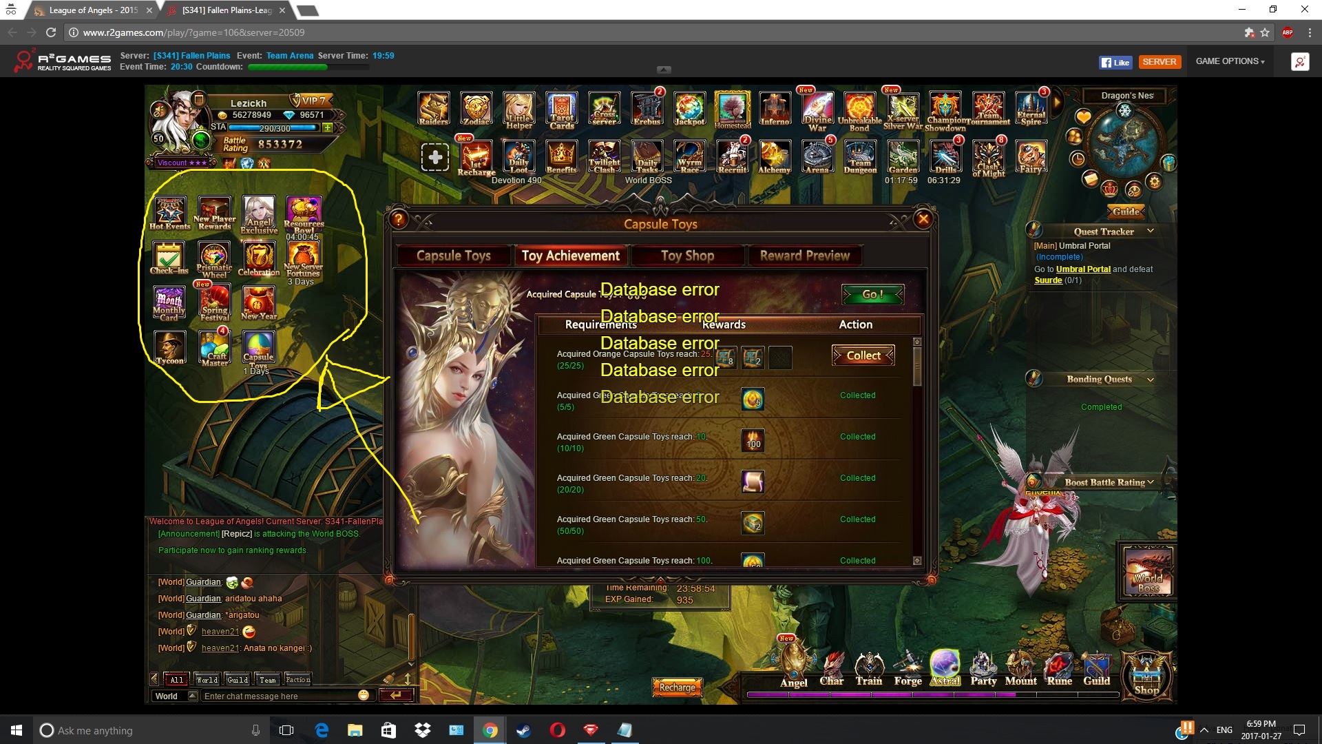As you can see It is that bug again where I can't collect the rewards from Toy achievement. The Red arrow points that I already got the 25/25 requirement.