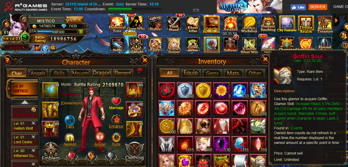 Good evening. Issue has been reported. Please also address the issue to support, here, http://www.r2games.com/support/?ac=ticket&ticket_type=7, giving all requested data (IGN/character name, server name and number), provide a detailed description of what happened and attach the screenshots you took. Thank you.REQUIRED INFO: Don't forget to provide your IGN, server name & number and screenshots for the issues & problems experienced. Recharge issues will require your transaction ID. Screenshots provided must be uncropped and timestamped.