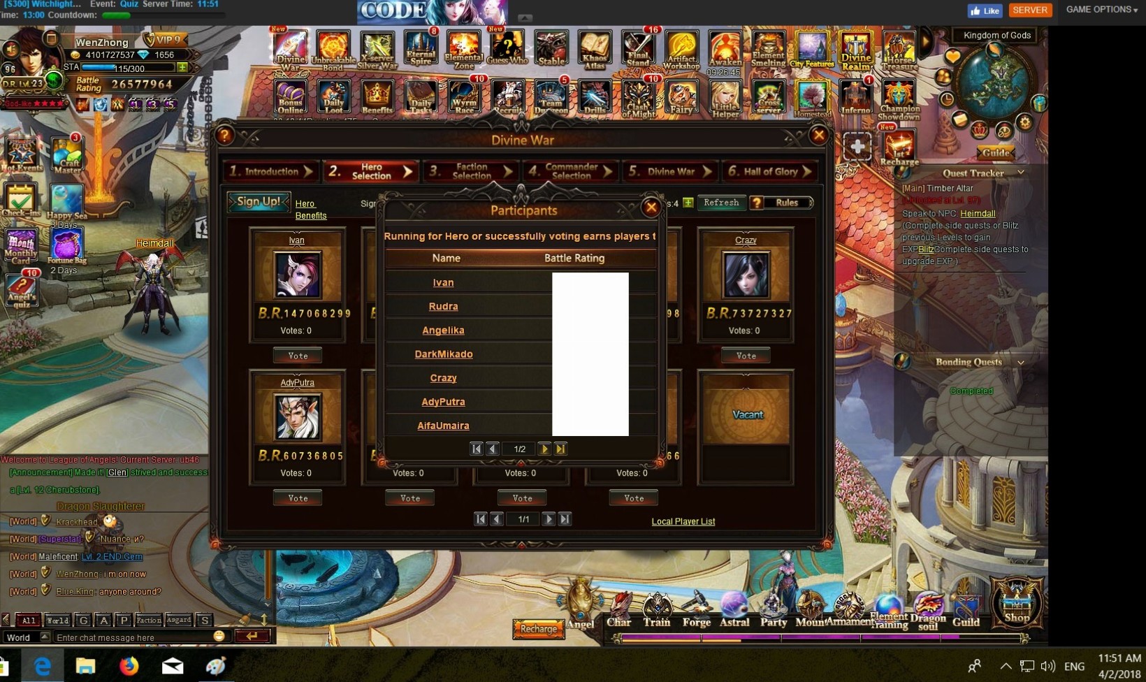 today someone is in the local player list in divine war when he is rank 30 in br and it is still not the voting period