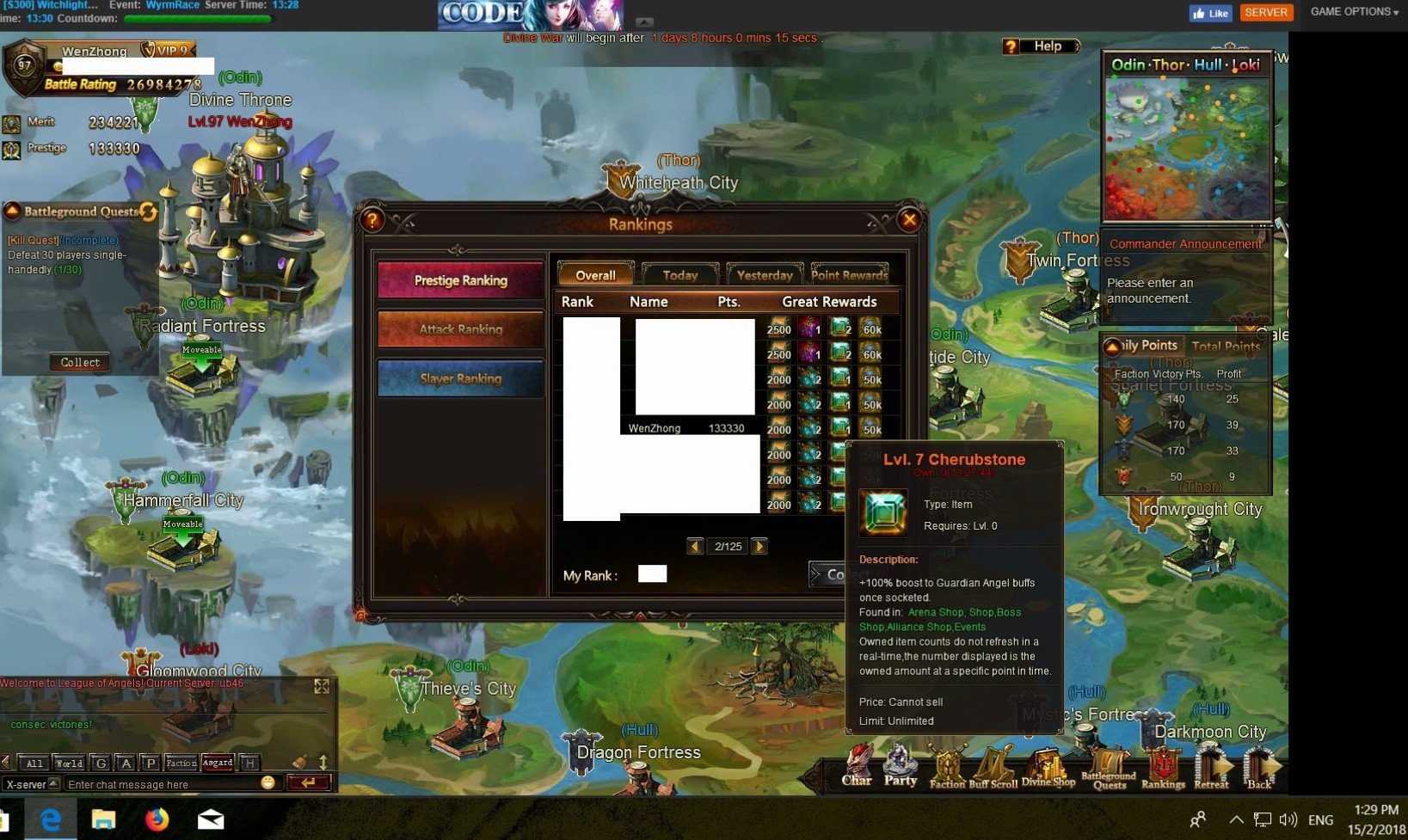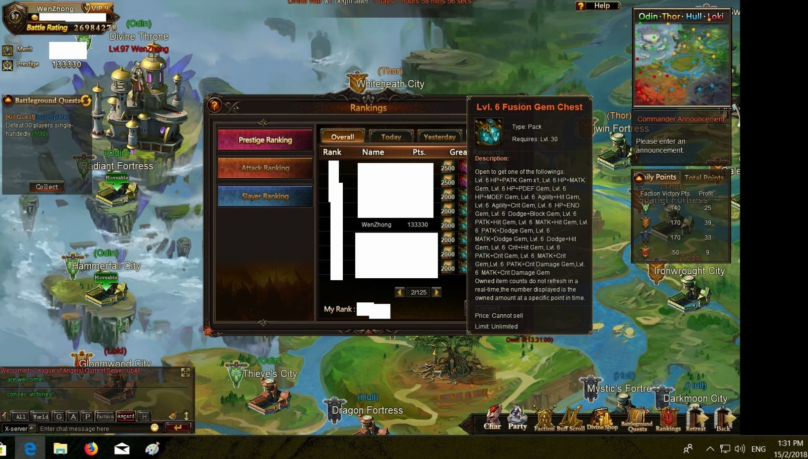 i can't collect divine war prestige ranking rewards