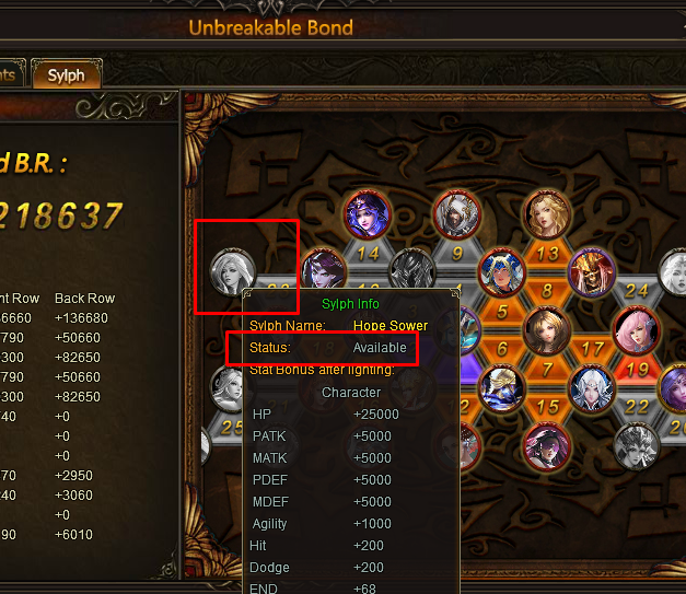 I have 14 sylph only 7 of them are active in unbreakable bond. The 7 that are :Ocean sprit ,shadow thorn, Heavenly storm, Leoric, Ocarina, Lannister and Shadow Phantom. The one's that are available but can't active are Forgotten Warrior, Spellcaster, Zeus, Star Mistress, Shadow Seeker and Soul Killer. It's saying when I put icon on that Sylph available but they are not blinking to active them ?? don't understand why I can't please help me with this and Thank you for your time.Brother Cain in whispering woods