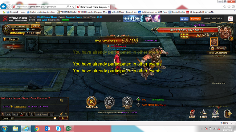 Hi, I am not able to do DW I had DW set up today on 30th April 2100. But when I join I keep getting an error saying "Already participated in other events". Please help.