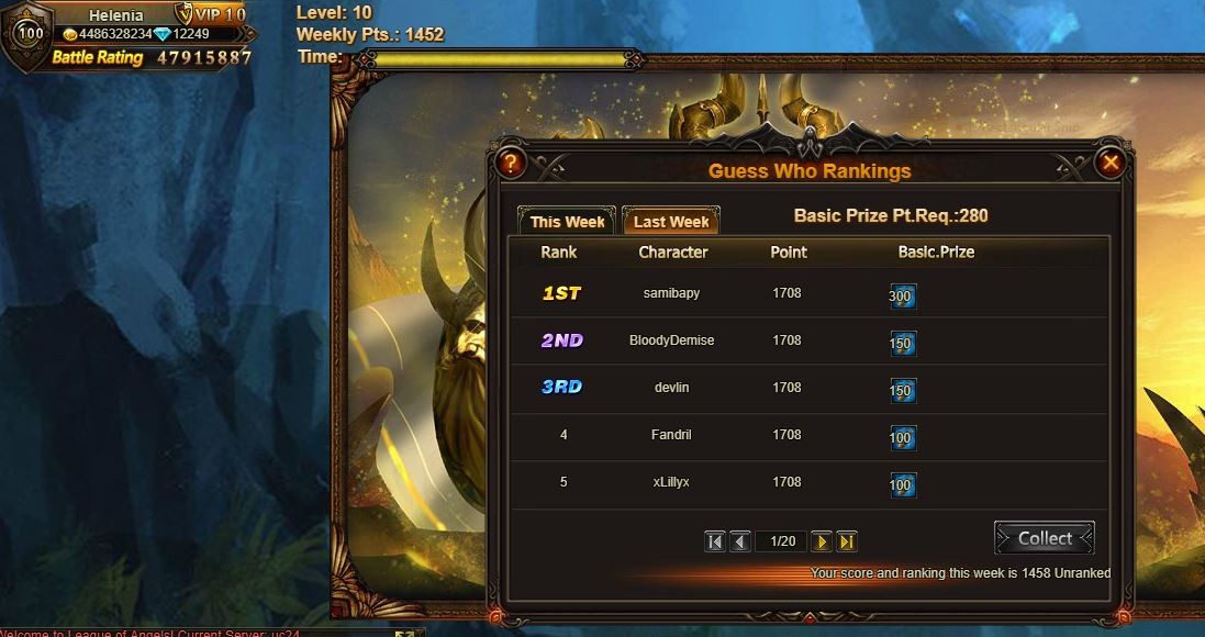 If it isnt hard for you, please provide screenshot of ranking table of your region. Also are you using manual guess who or little helper one?Last edited by Alkaris; 06-21-2018, 10:25 AM.