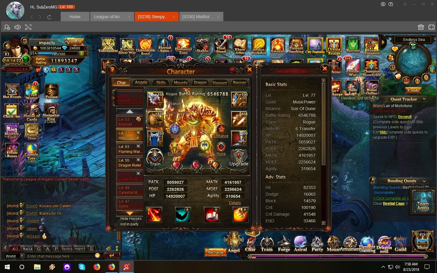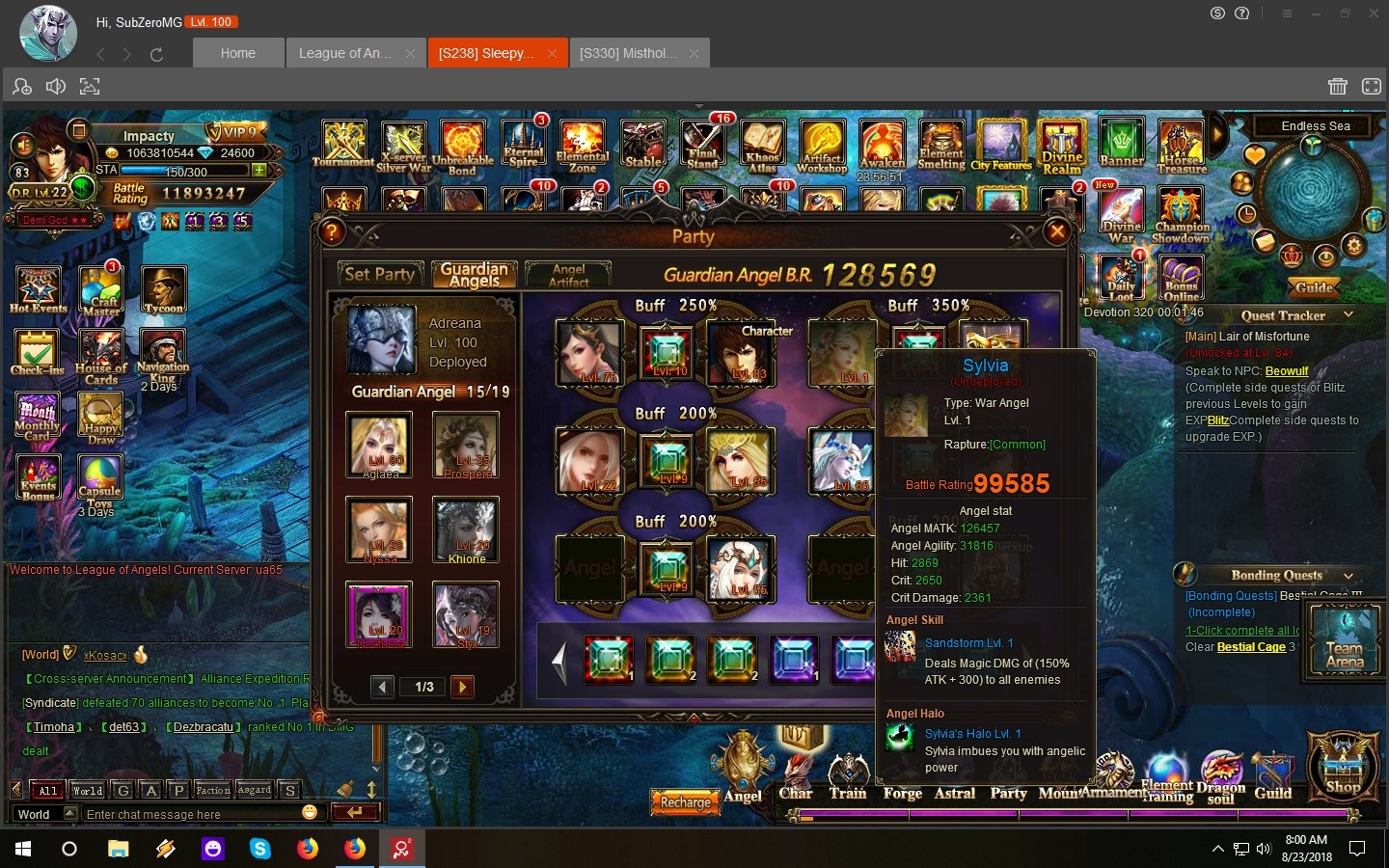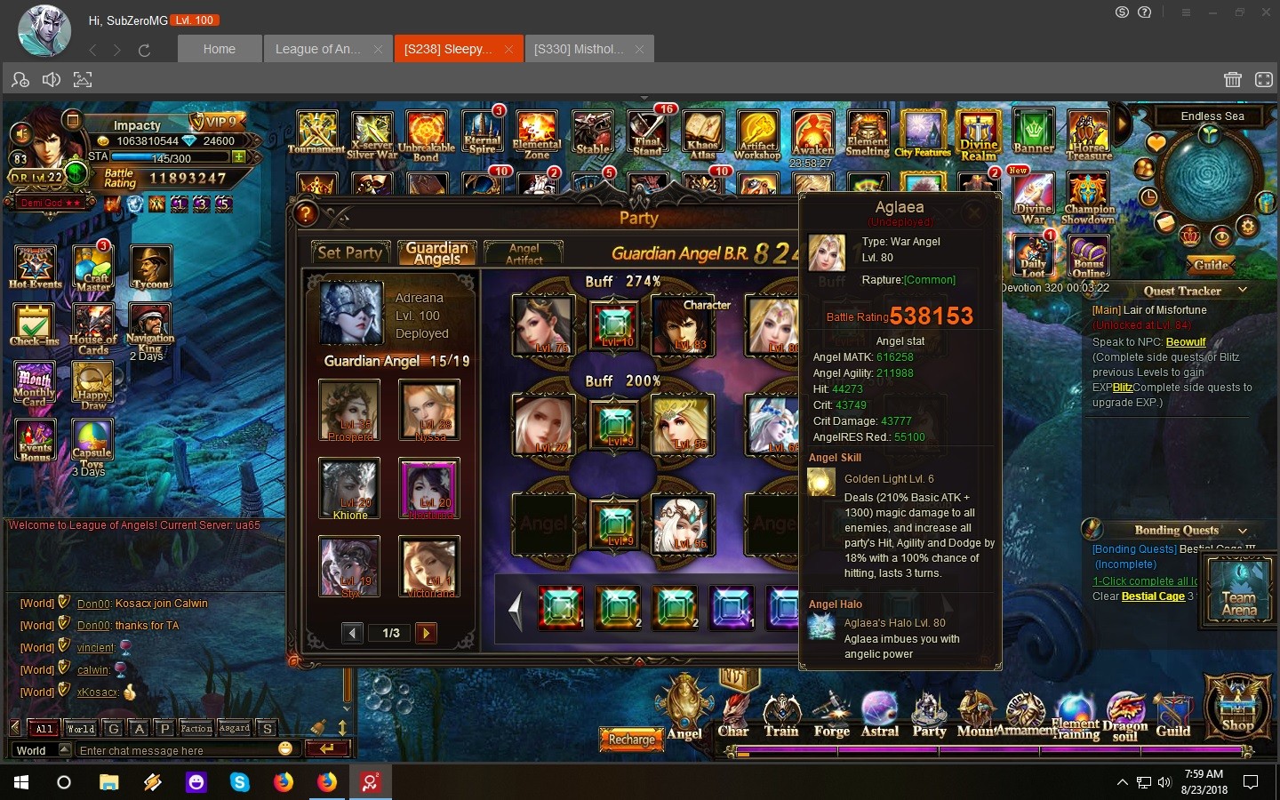 Impacty - Sleepywood Moore 238 If you check the pictures..in the first picture i have an angel with lvl 6 essences...high br angel..and i show the stats of my hero..and on 2nd picture i put a noob angel without anything..and my hero has the same stats. Nothing improved..hit...crit..crit dmg...agi ...