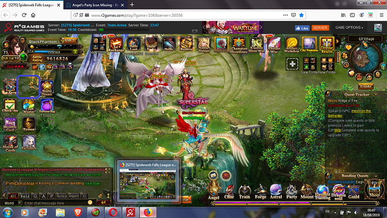 S355 Fire Island, toon name Hunter Magic. No Angel Party Icon. It appears some have it and some don't. Also, my server option and name are not attached to my account number either in order to submit ticket to fix issues. Another thing that happened was in last 40 minutes before reset, I was unable to log in until at reset time. This happened on end day of SS Tycoon and then yesterday to. Please fix thanks.