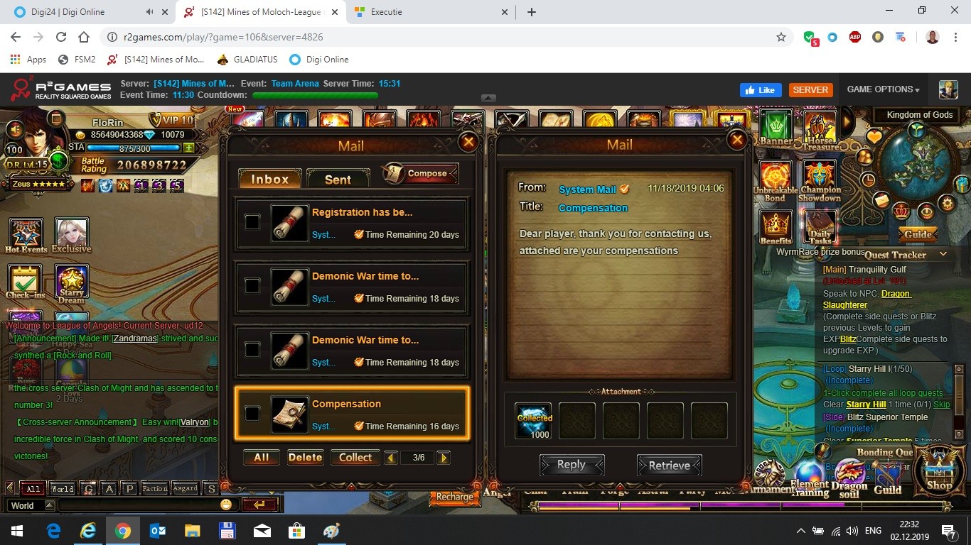 As in previous post history recharge dint appear for me,last time i received rewards in game .