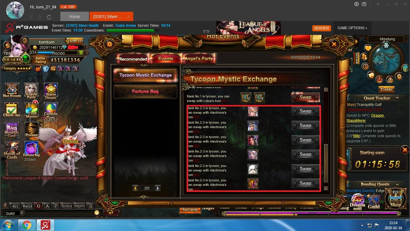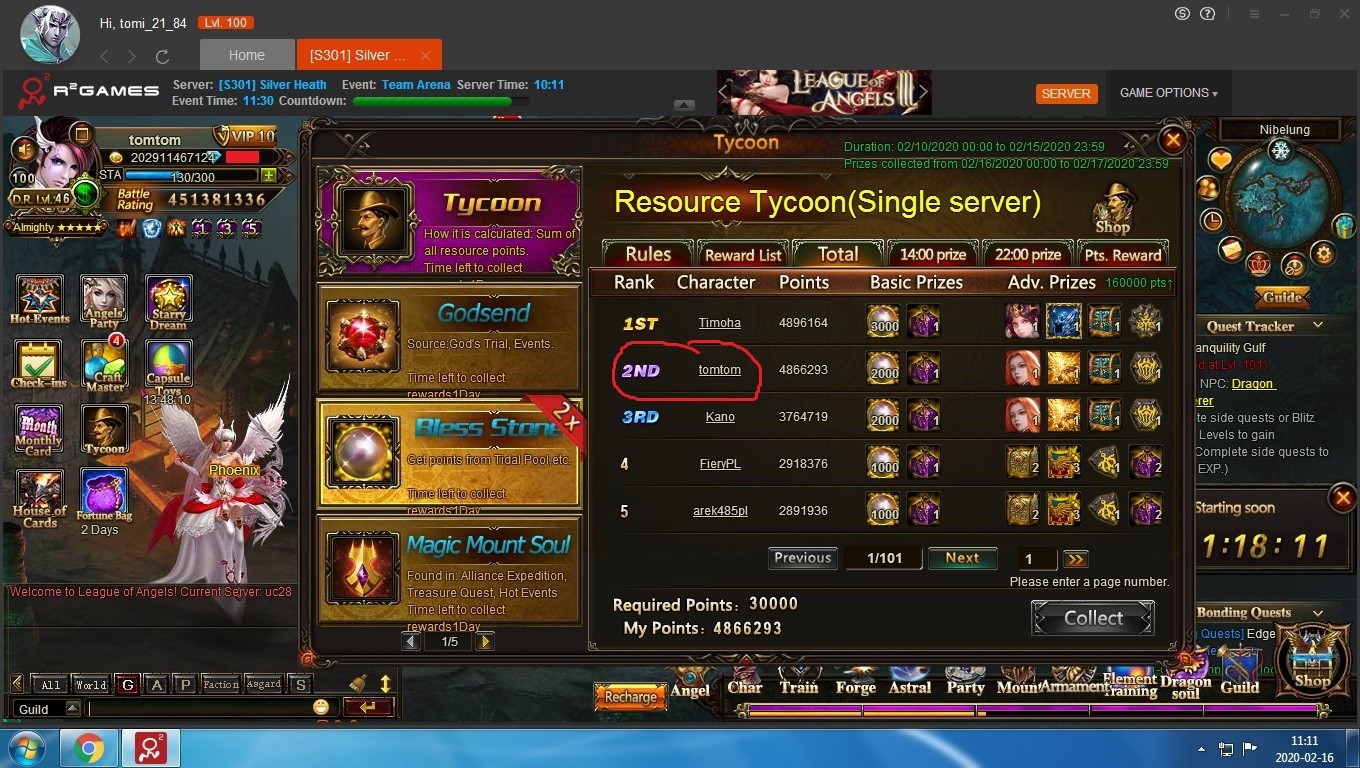 In the tycoon all the time I was in the first place only at the end I fell to the second position and I have no way of exchanging thank you for considering this problem